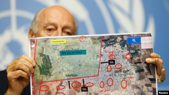 استفان دی ميستورا که در کنفرانسی مطبوعاتی در شهر ژنو سوئيس سخن میگفت اشاره کرد که هنوز بين ۵۰۰ تا ۷۰۰ فرد مسن در شهر کوبانی و بين ۱۰ هزار تا ۱۳ هزار غيرنظامی در مرز سوريه با ترکيه به سر میبرند.