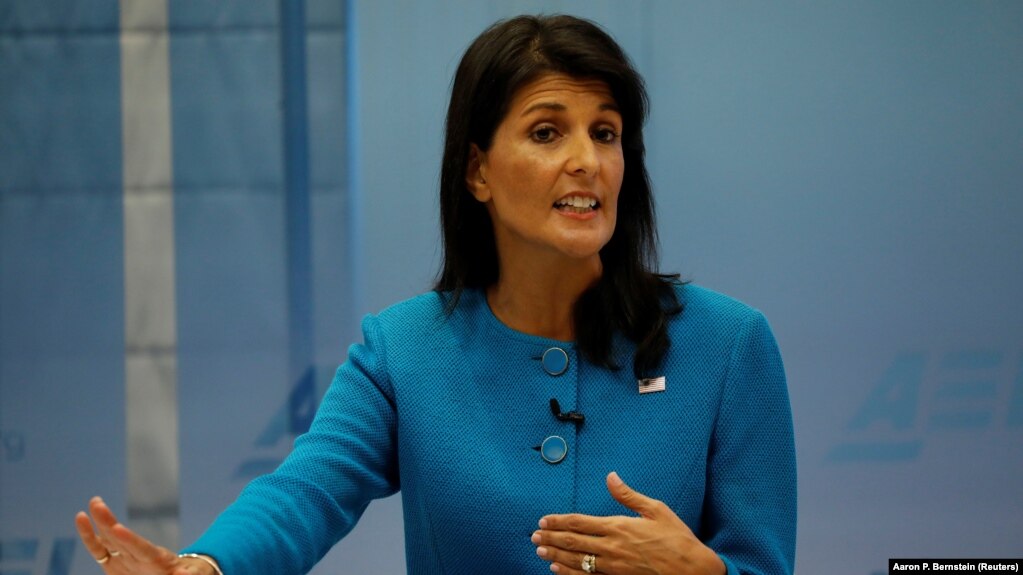 خانم هیلی، سفیر این کشور در سازمان ملل، روز پنجشنبه ۲۳ آذر با