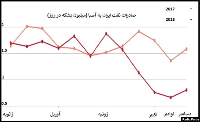 میرسد که صادرات نفت ایران بین ۸۰۰ هزار تا ۱.۱ میلیون بشکه در روز باقی