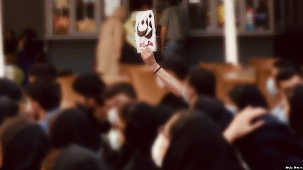 در دانشگاه «شهید بهشتی» تهران، دانشجویان شعار میدهند: «بهش نگید اعتراض، اسمش شده انقلاب»