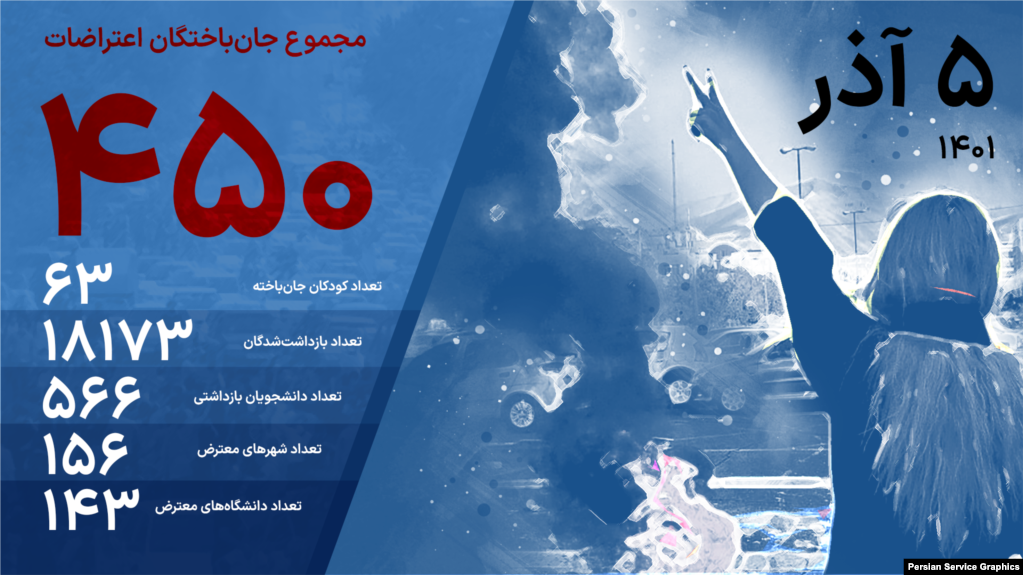 پنجم آذر ۴۵۰ نفر در اعتراضات ایران جان خود را از دست دادهاند که ۶۳ نفر